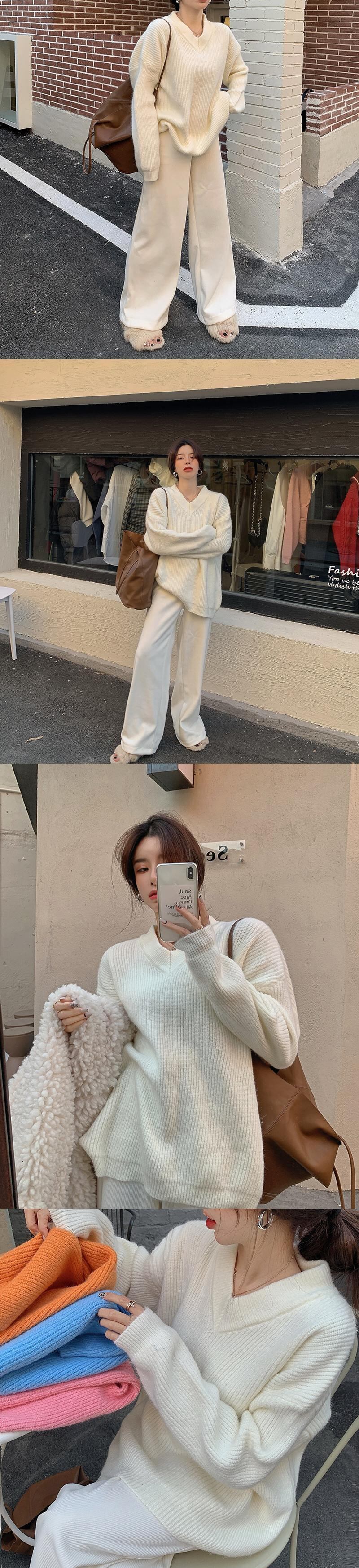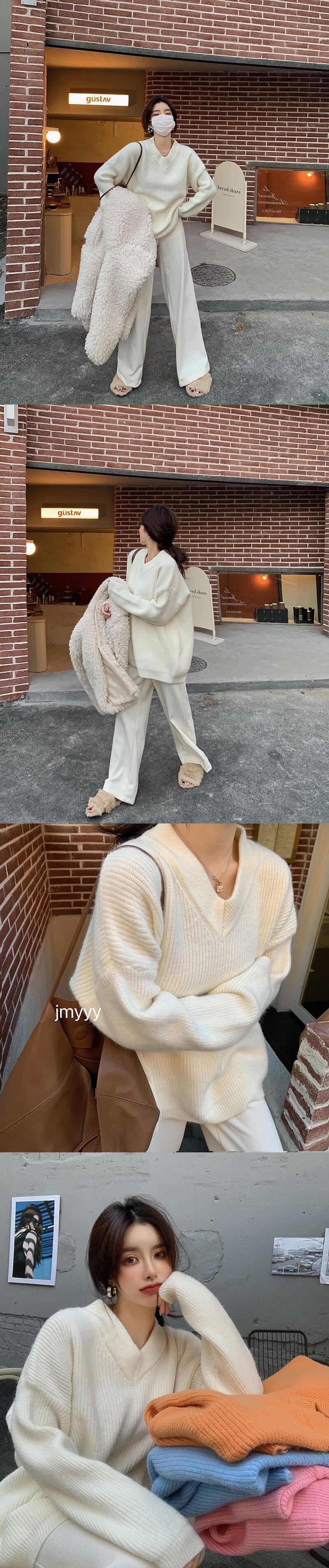 セーター オータムウィンターVネックニットコート プルオーバー トップス ピンク 秋物 冬物 ブラックストロベリース46613686600