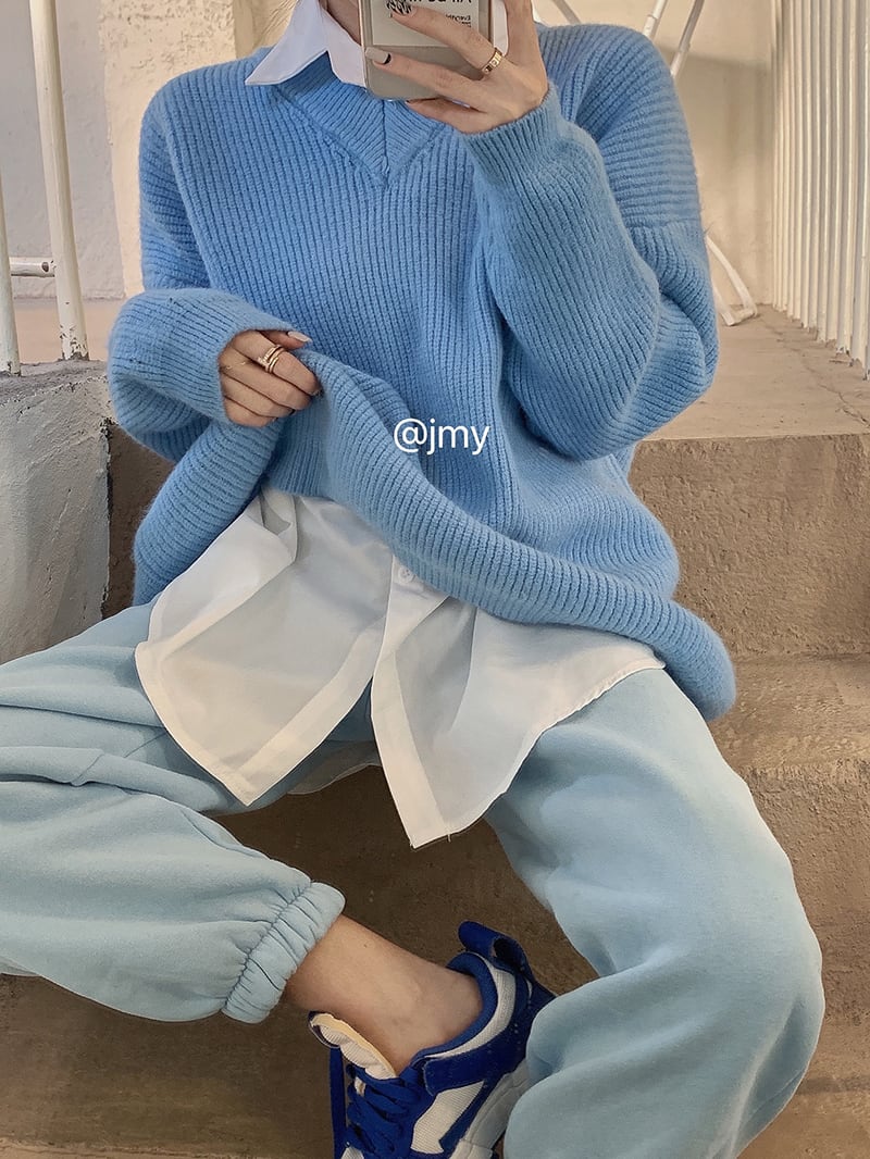色:白いセーター,オレンジ色のセーター,ピンクのセーター,青いセーター,白のシャツ