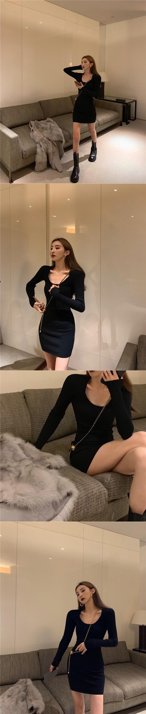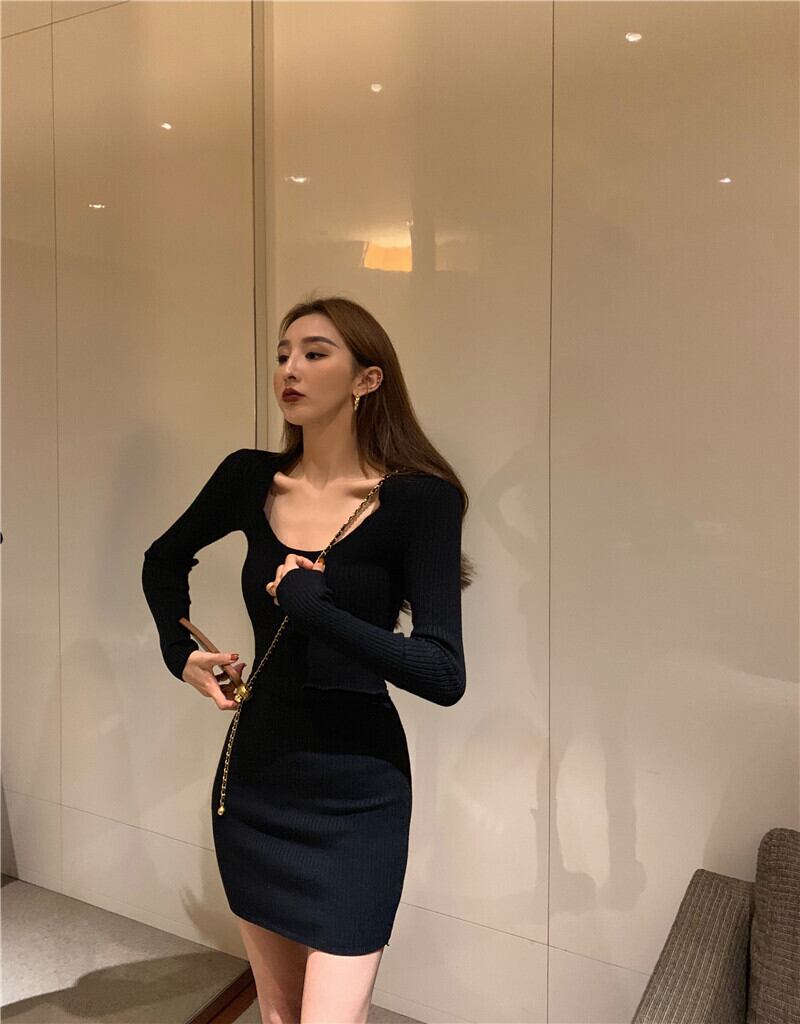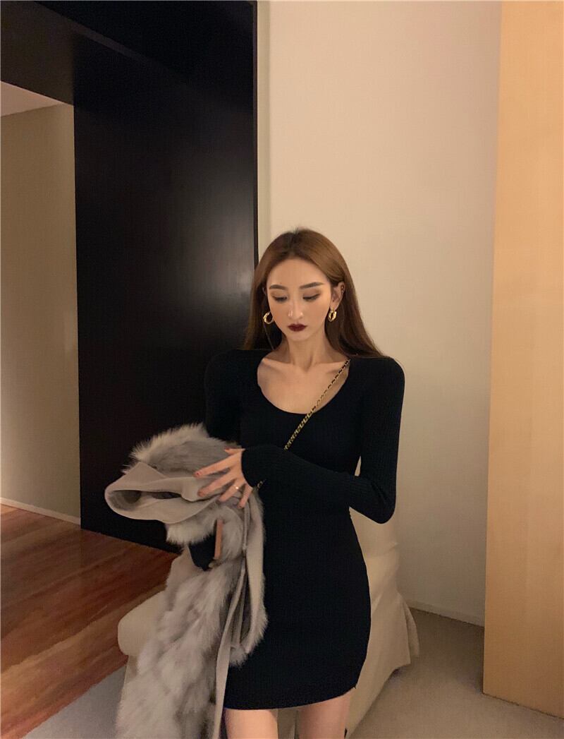 ニットドレス オータムウィンタースリムスカート ウェスト ロング 秋物 冬物 ブラックストロベリース69820967123
