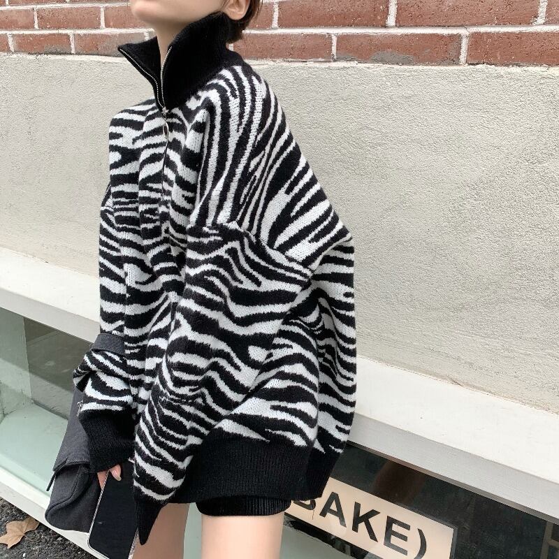 パターンセーター ジャケット レディースオータムウィンタールーズジッパープルオーバー トップス 秋物 冬物 ブラックストロベリース78255112153