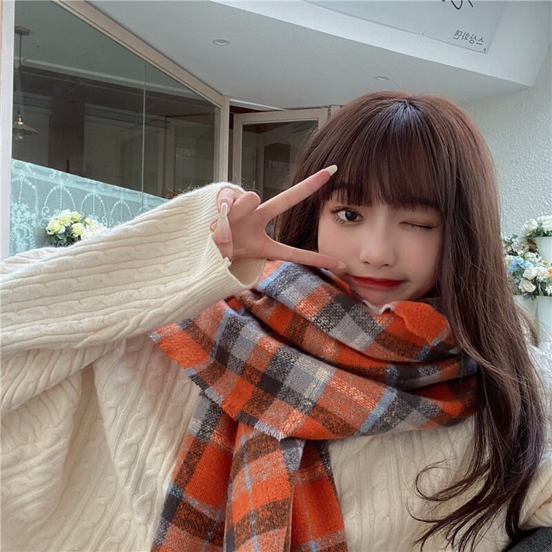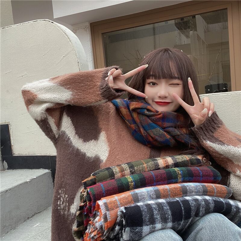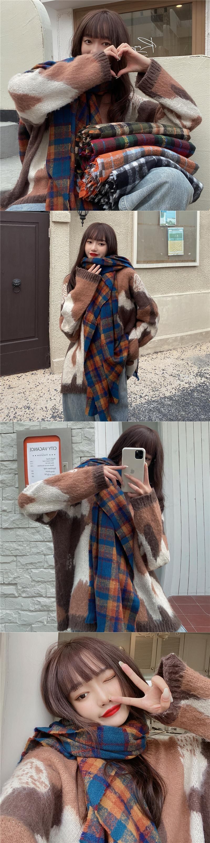 スタンダード格子柄スカーフ ウィンター レトロ 冬物 ブラックストロベリース28688591259