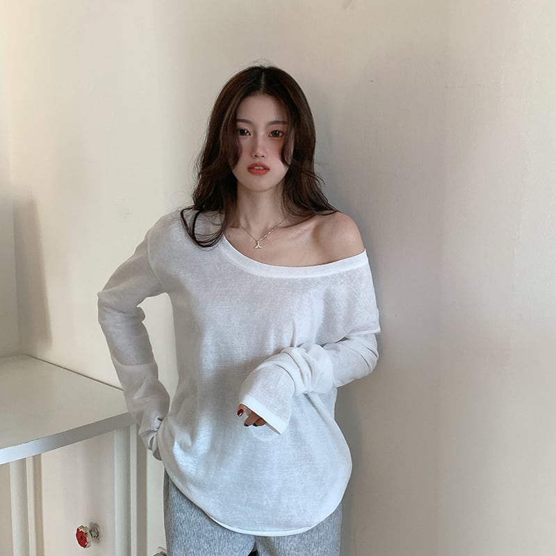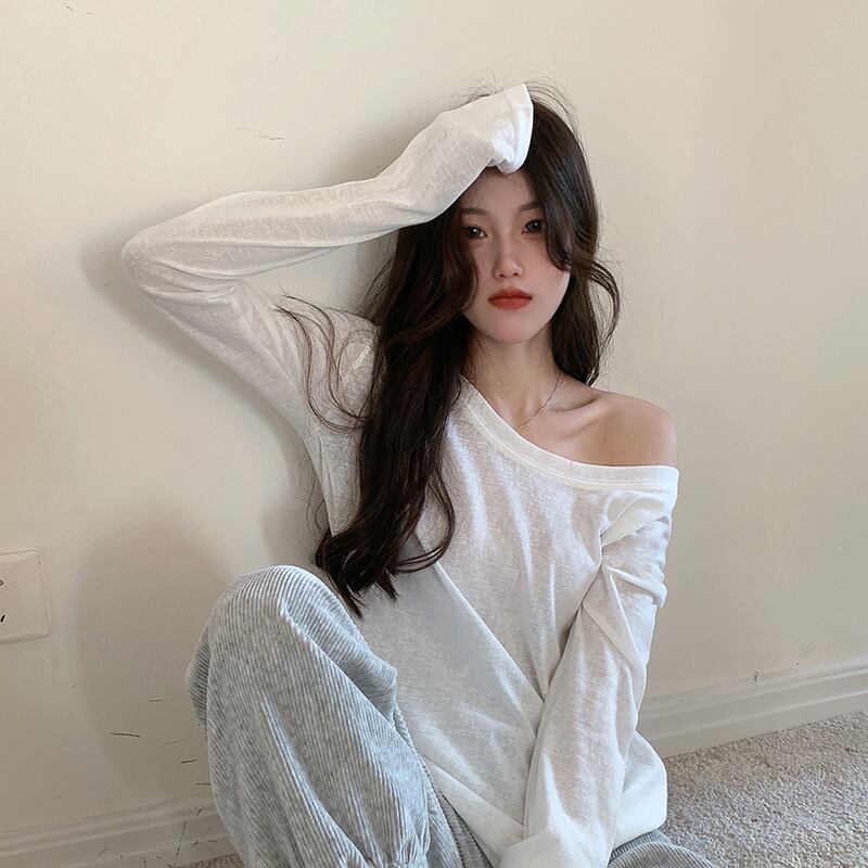 Tシャツ シャツ レディースルーズホワイトオータムウィンタースタイルトップス ロング 秋物 冬物 オフショルダー ブラックストロベリース71161472489