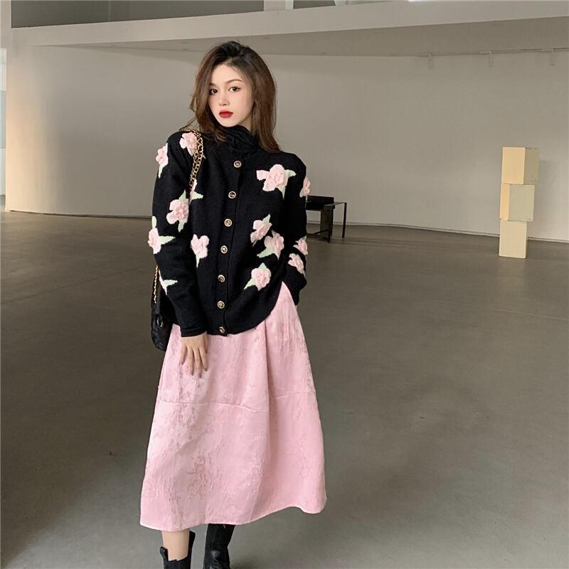 色:立体フラワーセーター,サテンスカート