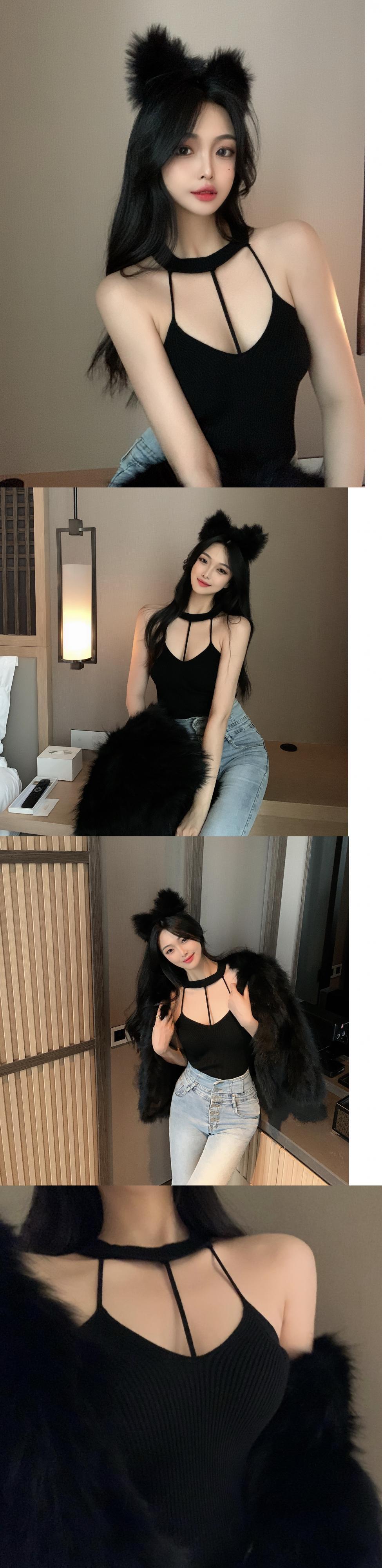 サマーブラックニットシャツ トップス 夏物 ブラックストロベリース65664956321