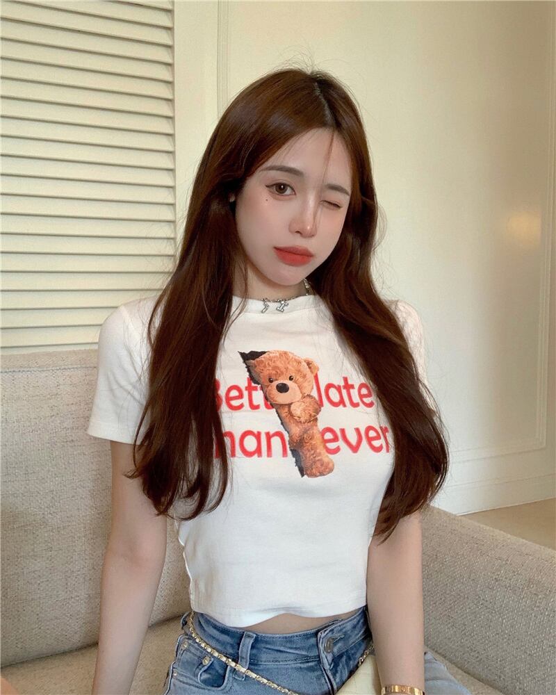 Tシャツ サマーショートブラックトップス 夏物 ヨーロピアン ブラックストロベリース25052154006