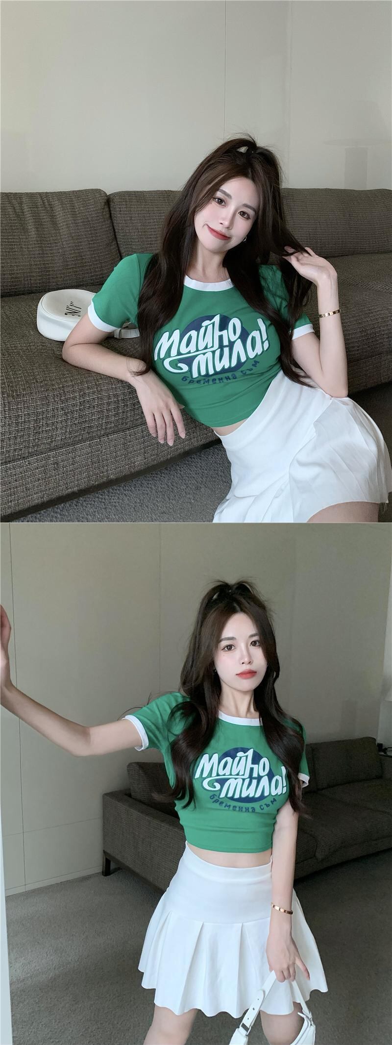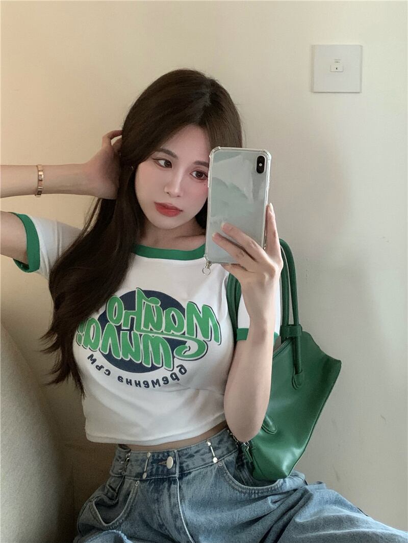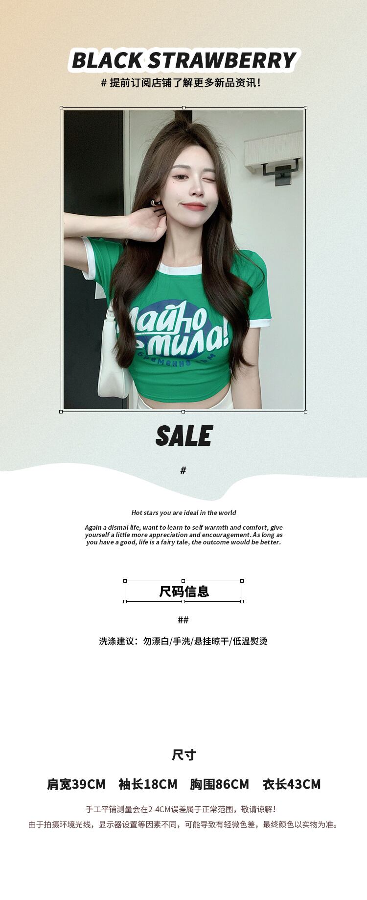 Tシャツ サマーショートスリムグリーントップス 大人ガーリー スウィート キュート カジュアル 夏物 ヨーロピアン ブラックストロベリース89120719642