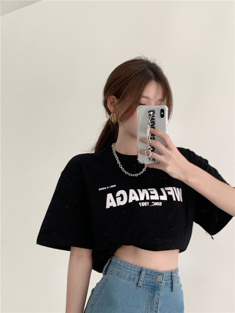 プリントTシャツ サマー薄手スタイルルーズブラックトップス かわいい 夏物 ブラックストロベリース86768689214
