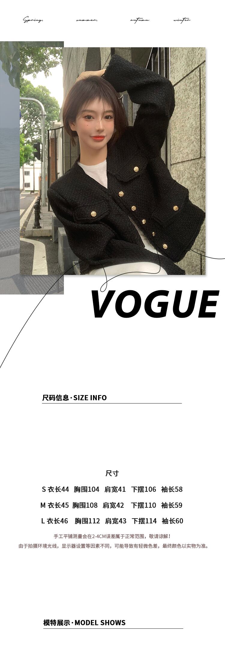 ツィードショートカーディガンジャケット レディースオータムブラックVネックトップス ロング 秋物 ブラックストロベリース32956810305