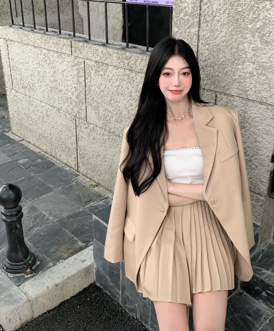 色:黒いスーツ,黒スカート,ミルクティースーツ,ミルクティーカラースカート