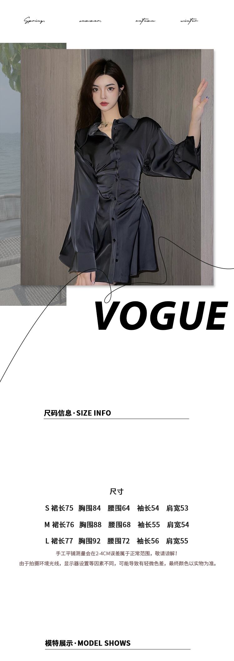 シャツ ドレス ブラックウェストカラーショートスカート オータム ロング 秋物 ブラックストロベリース98166781712