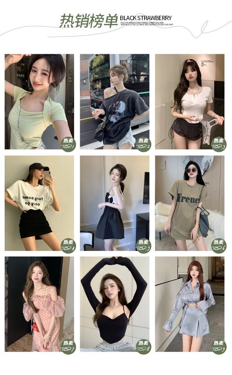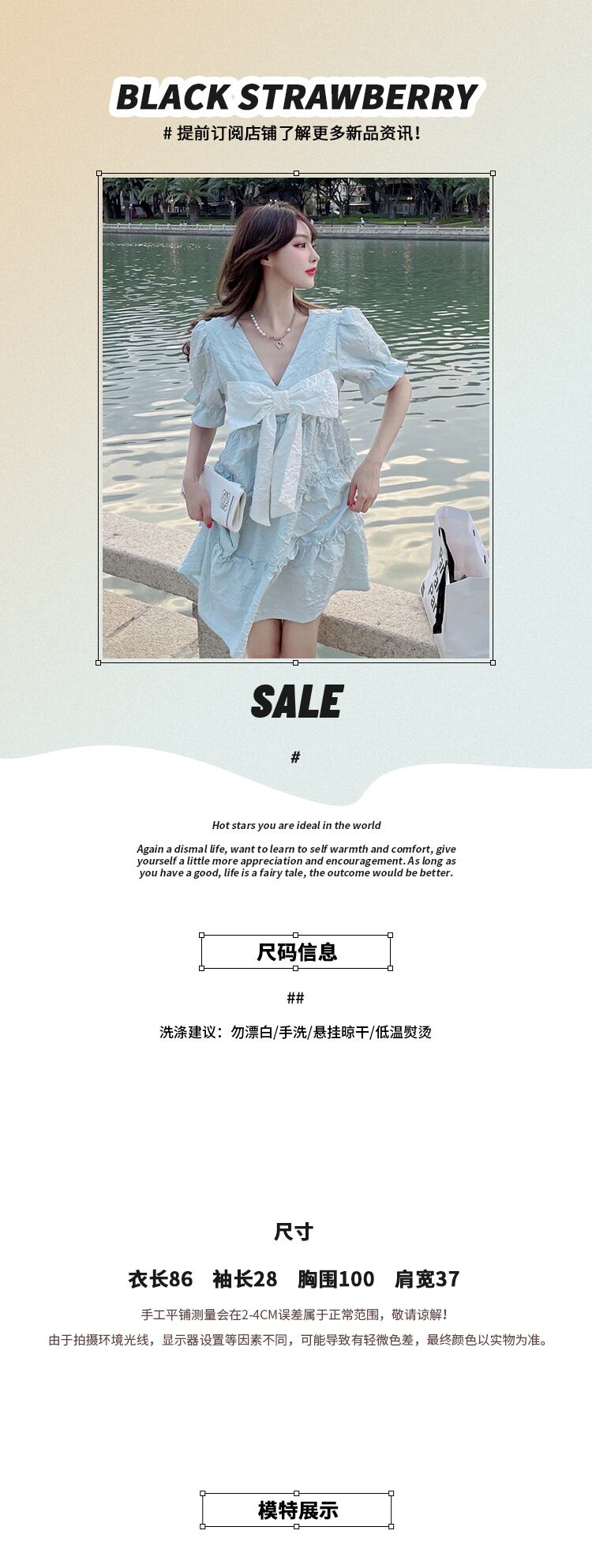 ドレス 半袖スリーブスカート サマー ショート リボン ハーフスリーブ 夏物 ブラックストロベリース2657817354