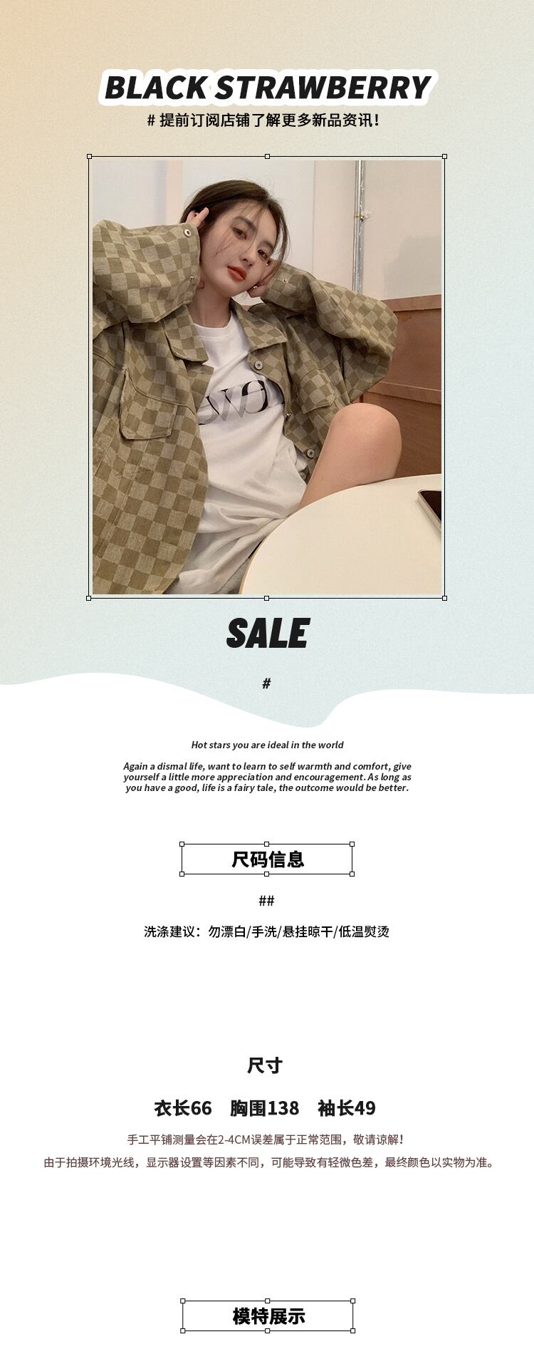 格子柄クロップドジャケット ルーズプリント柄カラーカーディガンオータム 秋物 ブラックストロベリース2456924497