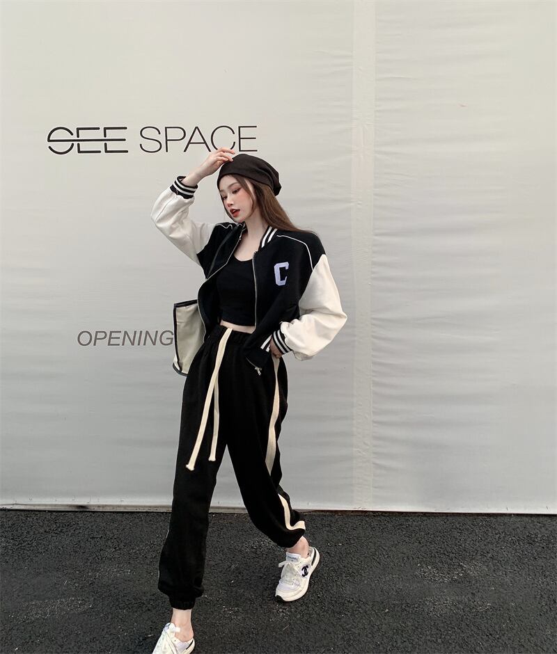 ショートジャケット コート スタンダードカラー刺繍ジッパーオータムトップス レトロ 秋物 ブラックストロベリース74670726804