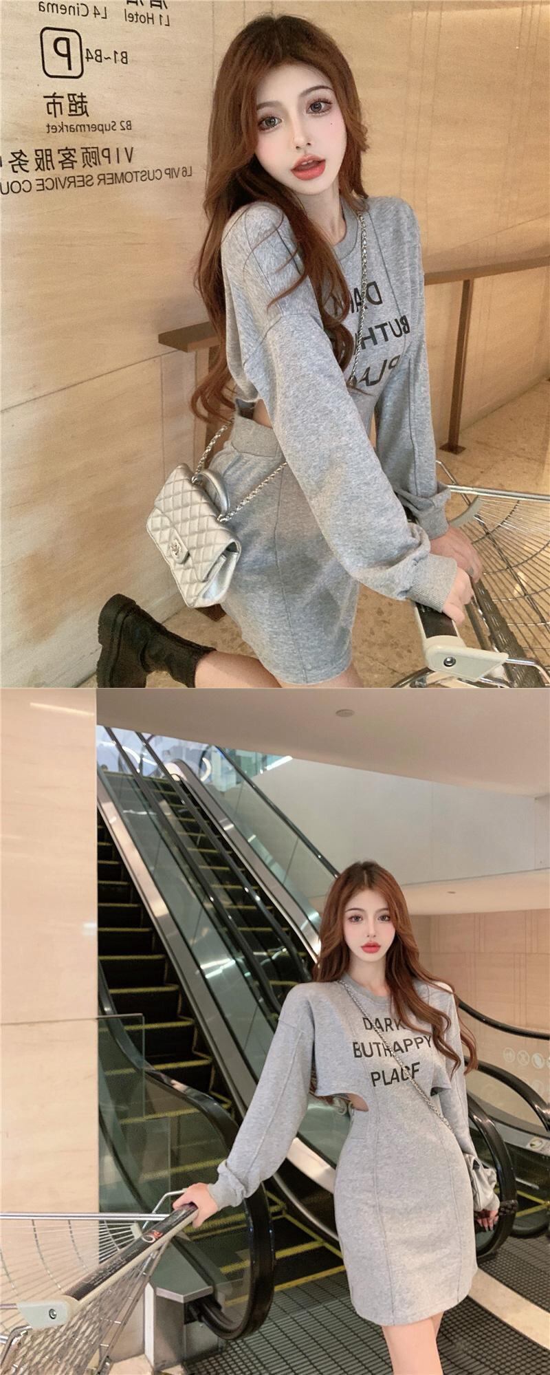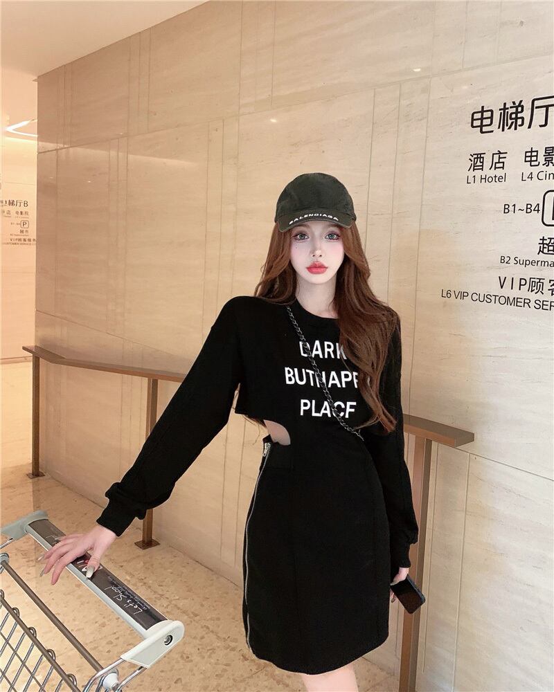 セーター ドレス スリムプリントジッパースカート オータム ロング 秋物 ブラックストロベリース80582784525