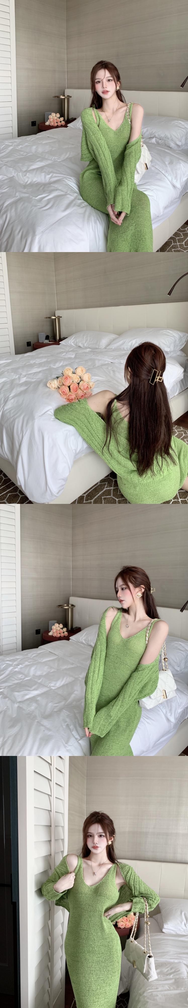 ドレス スリムVネックスカート オータムグリーン 秋物 ブラックストロベリース80319245668