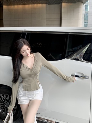 Tシャツ シャツ ショートVネックオータムトップス ロング 秋物 ピュア ブラックストロベリース29201723751