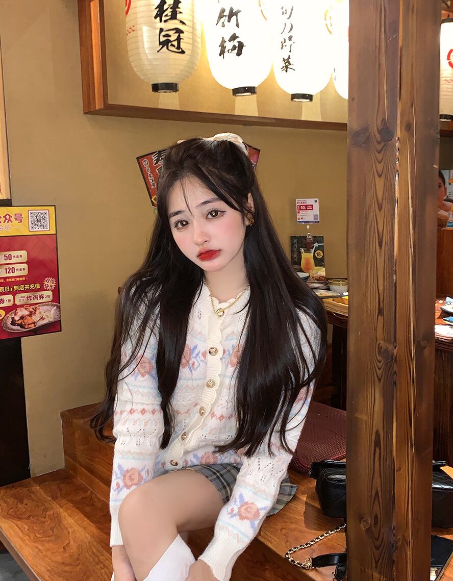 ニットセーター レディースジャカードスタンダードスタイルカーディガンコート オータムトップス レトロ 秋物 ブラックストロベリース99399256687