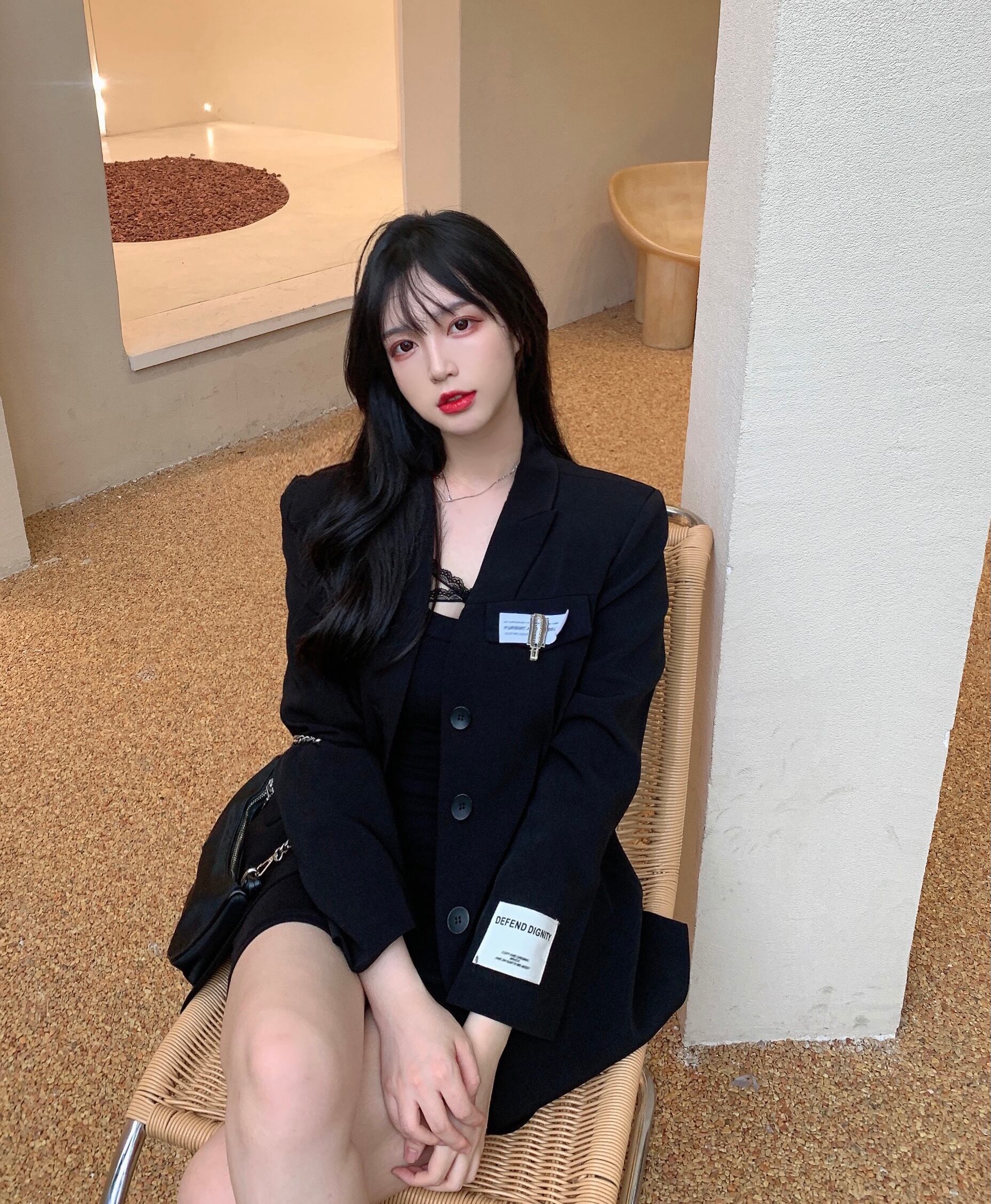 ウェストブレザー ブラックルーズカジュアルオータムトップス ストリート 秋物 ブラックストロベリース89389329327