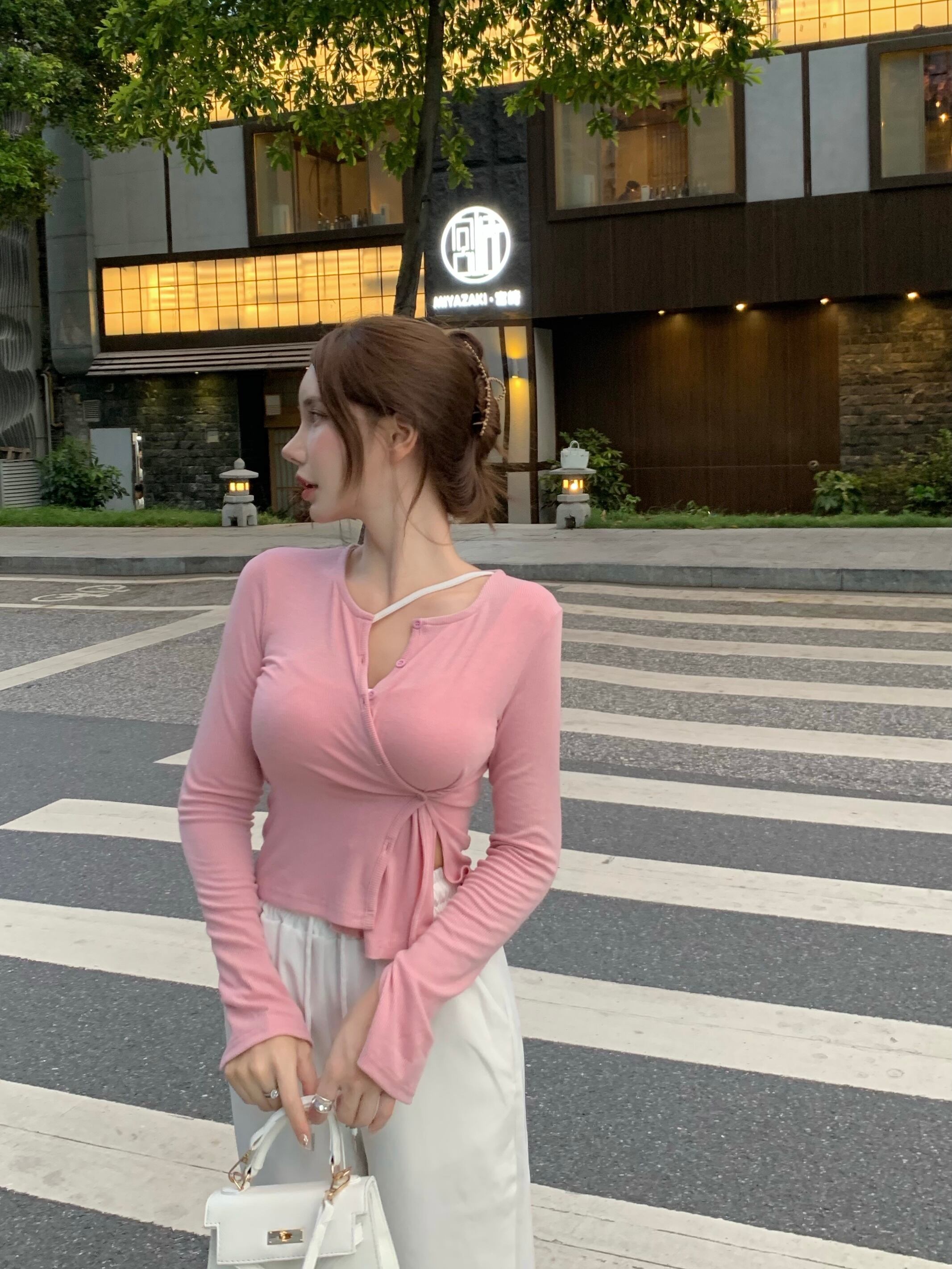 ニットセーター レディースショートスリムカーディガンコート オータムトップス ピンク 秋物 ブラックストロベリース13472936950