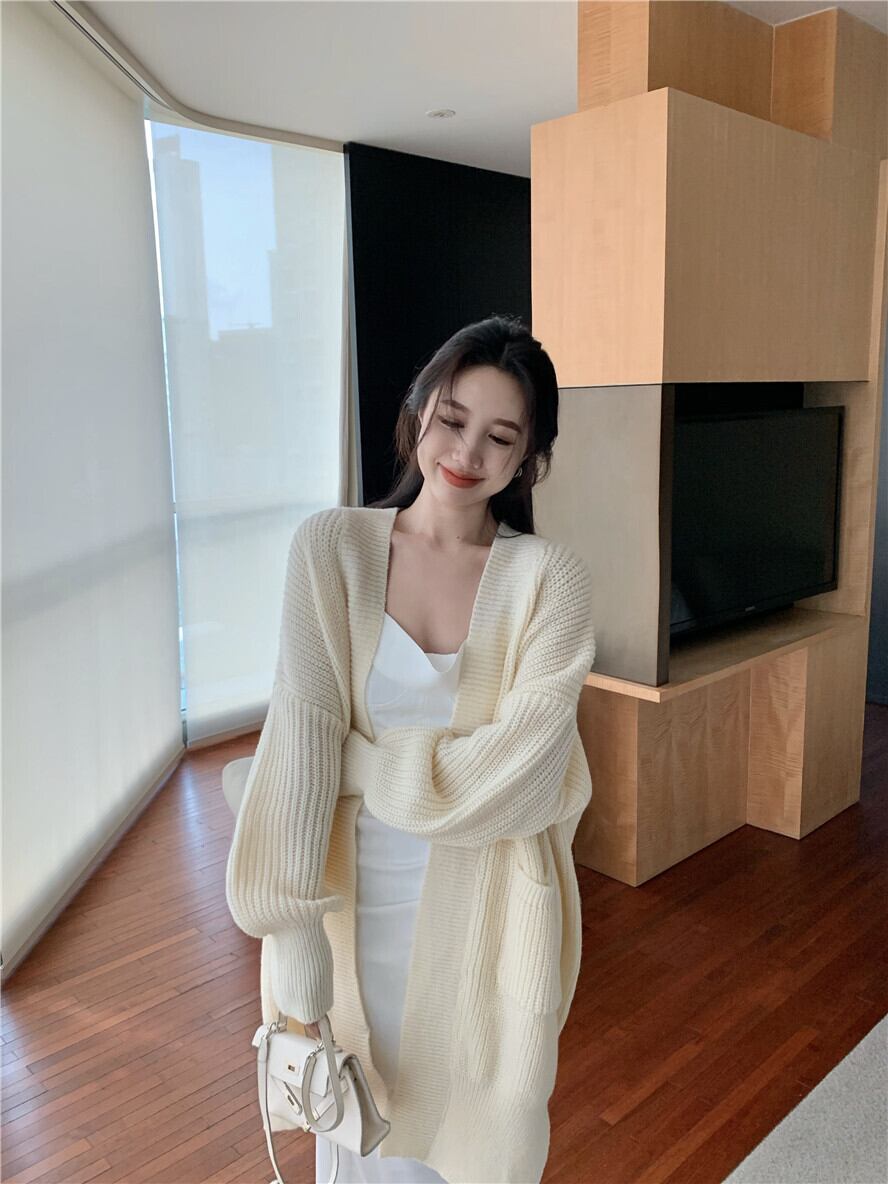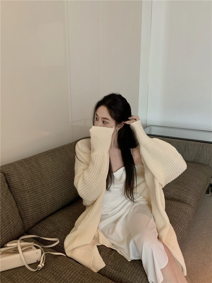 セーター ルーズスタイルコート オータムカーディガン ロング 秋物 ブラックストロベリース47397461230