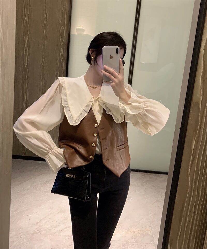 カラーシャツ オータムトップス ロング 大人ガーリー スウィート キュート カジュアル 秋物 ブラックストロベリース34676315556