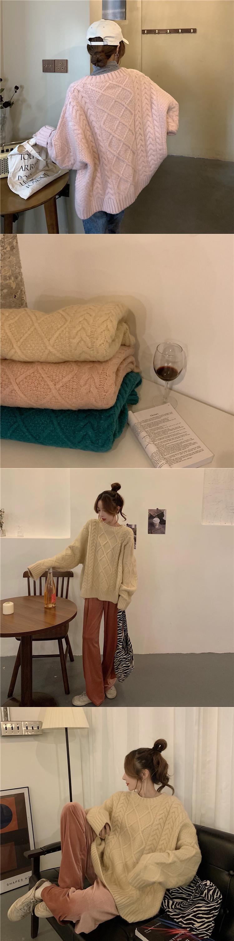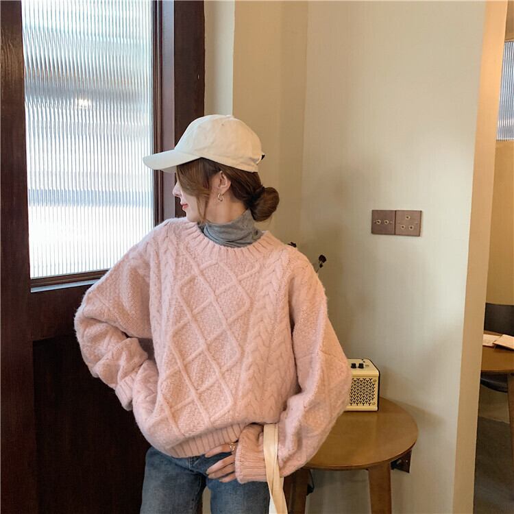 セーター ジャカードルーズラウンドネックプルオーバー コート オータムニットカジュアルトップス 秋物 Oネック ブラックストロベリース89912523039