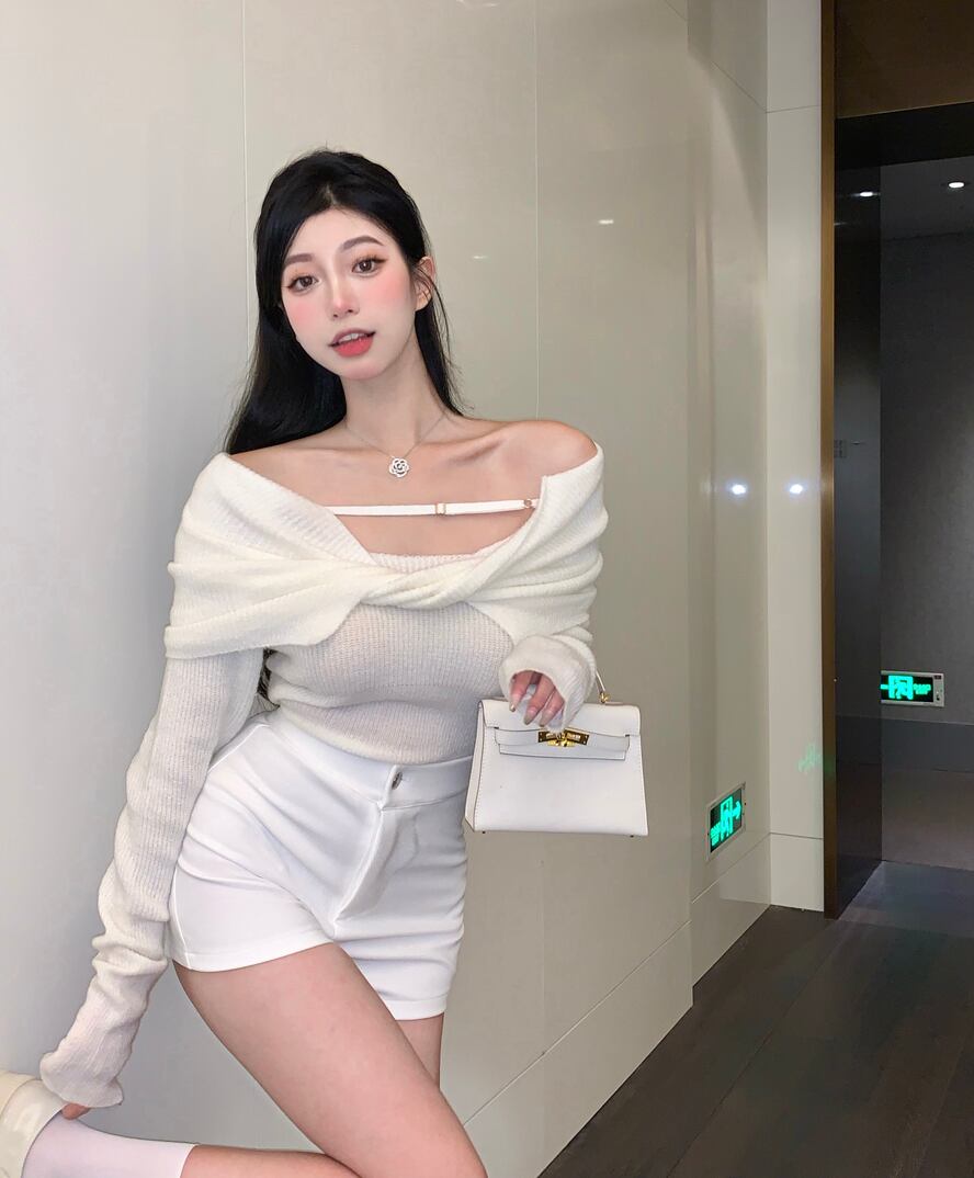 セーター レディースオータムホワイトショートシャツ トップス ロング 秋物 ブラックストロベリース93038733901