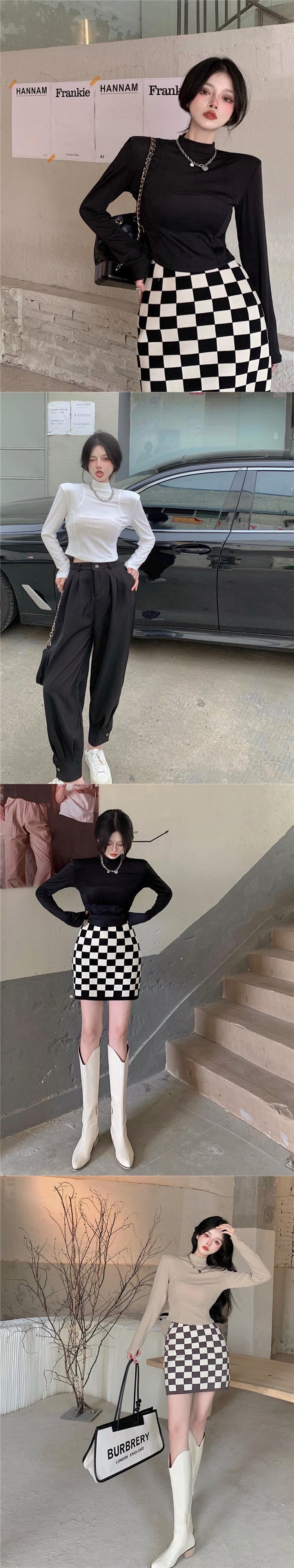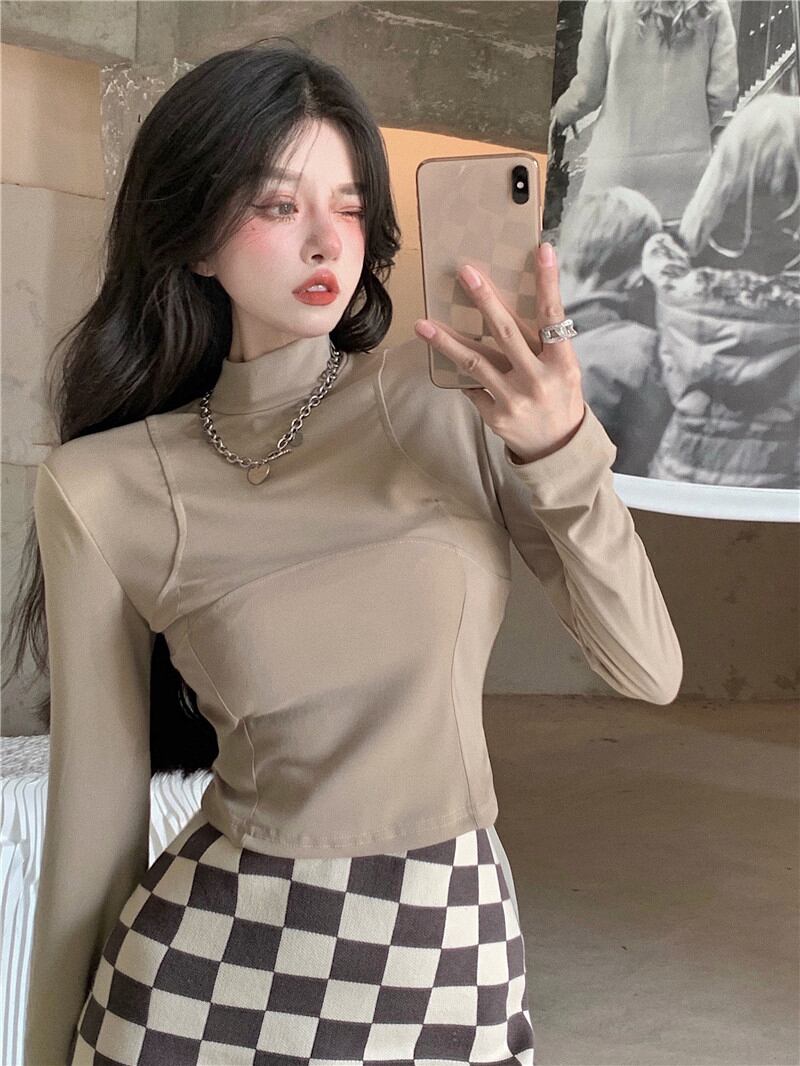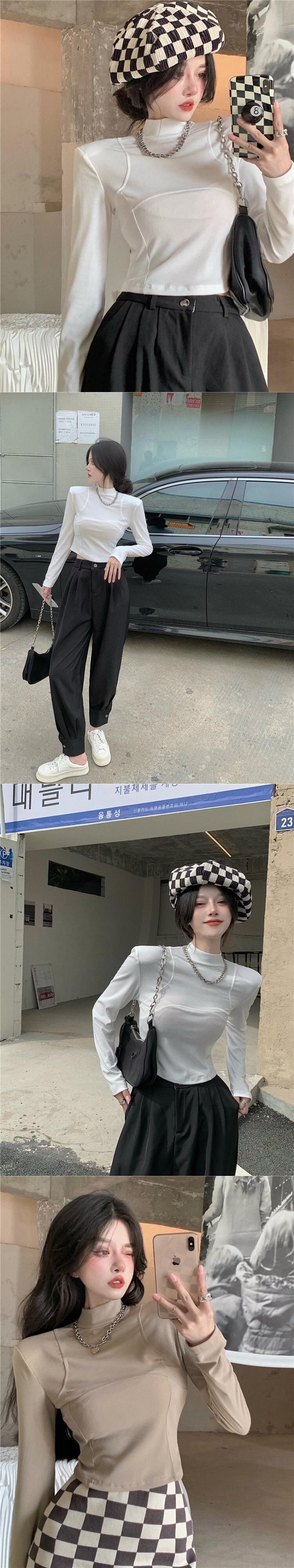 Tシャツ シャツ ショートスリムオータムトップス ロング 秋物 ステッチ ブラックストロベリース14259067084