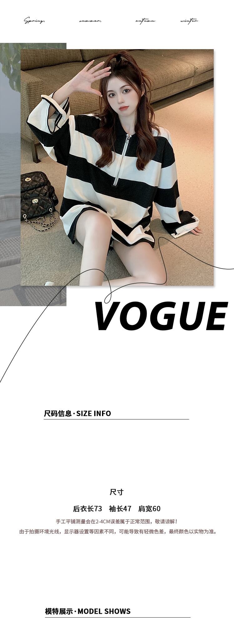 ルーズ薄手ストライプシャツ セーター レディースオータムカラートップス 秋物 ブラックストロベリース64603648374
