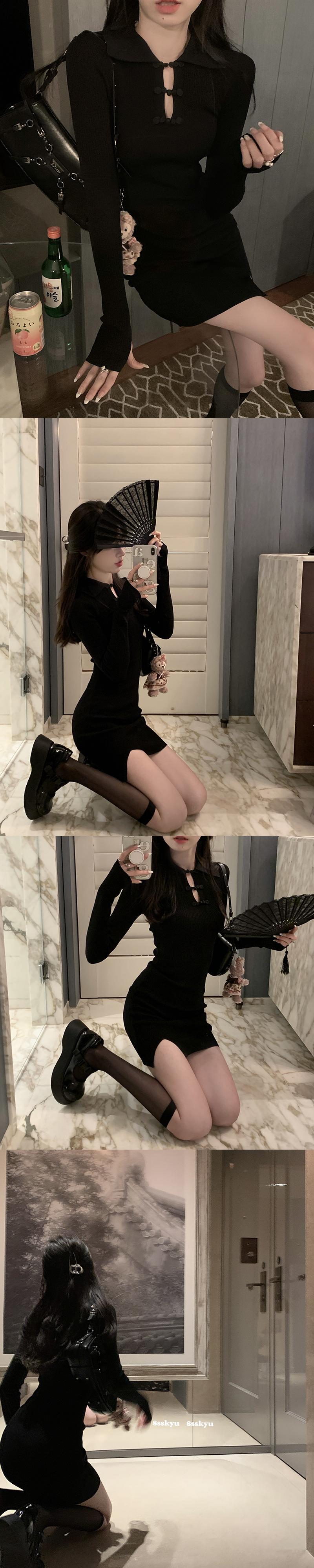 ニットドレス ショートスカート オータムカラーブラック 秋物 ブラックストロベリース42834974889