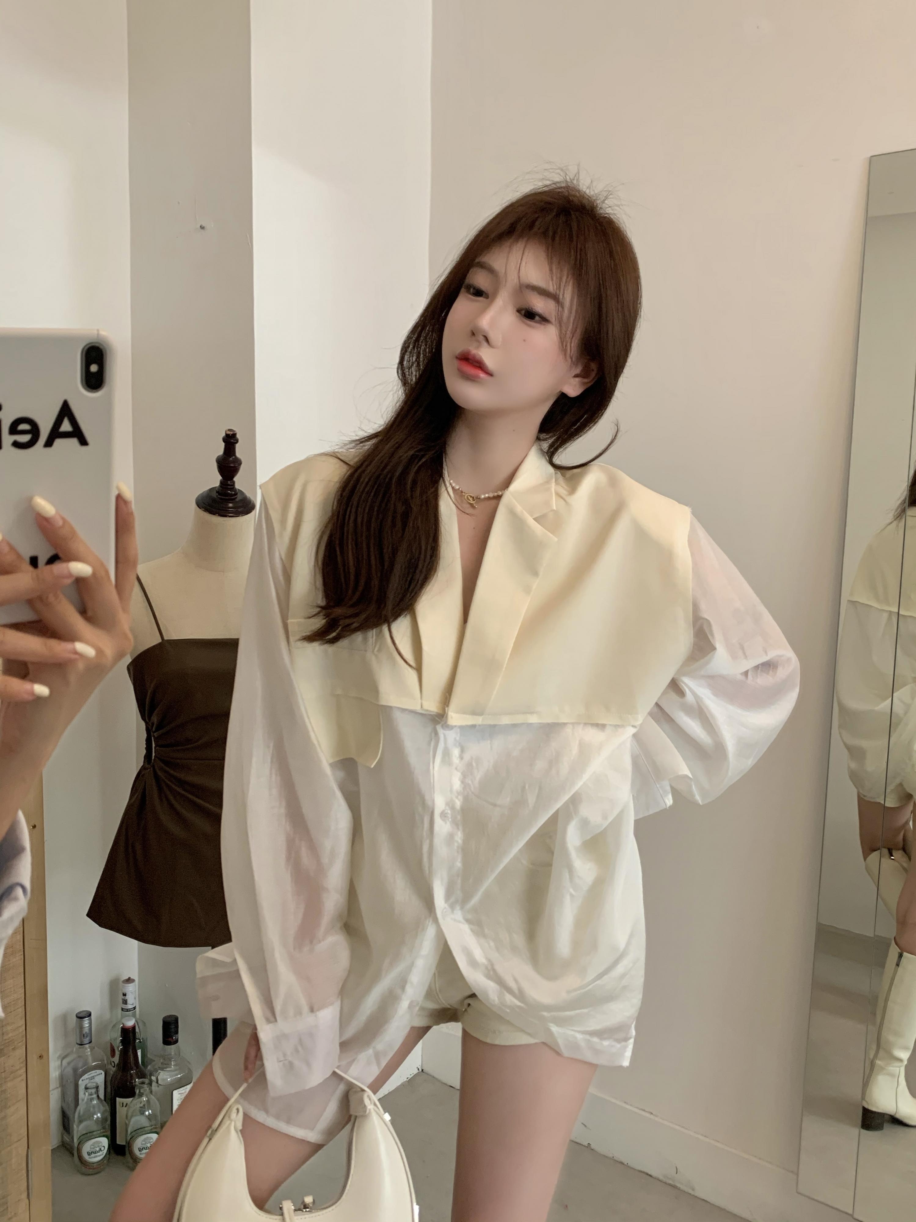 シャツ ルーズスタンダードカラーオータムトップス ロング レトロ 秋物 ブラックストロベリース16780500803
