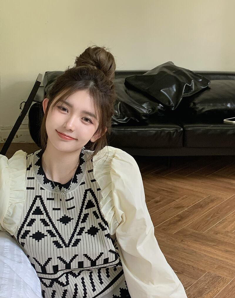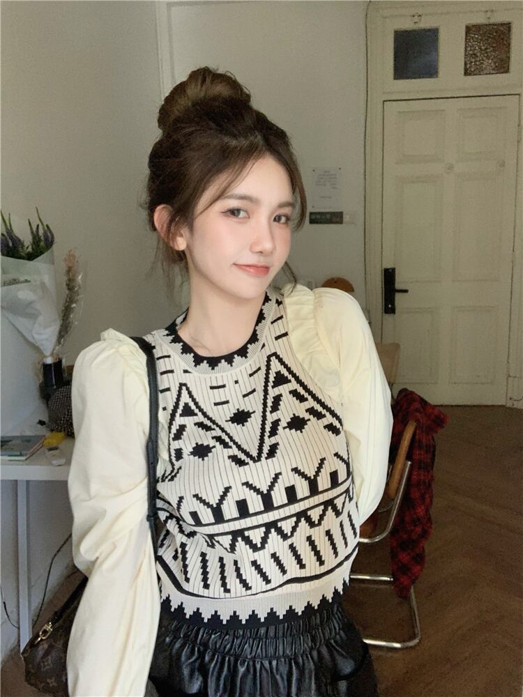 ニットセーター オータムショートスタイルトップス ロング 秋物 ステッチ ブラックストロベリース53407594931