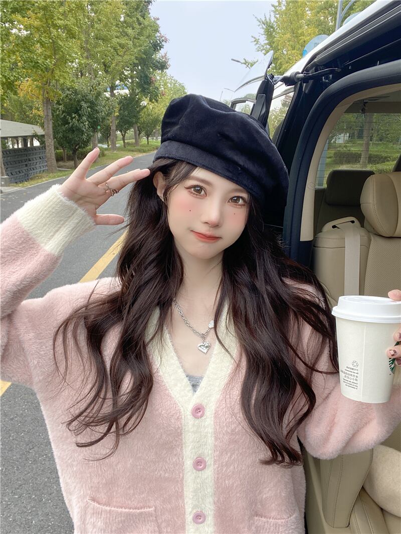 ニットカーディガンオータムセーター ロング 大人ガーリー スウィート キュート カジュアル 秋物 ブラックストロベリース2396374923