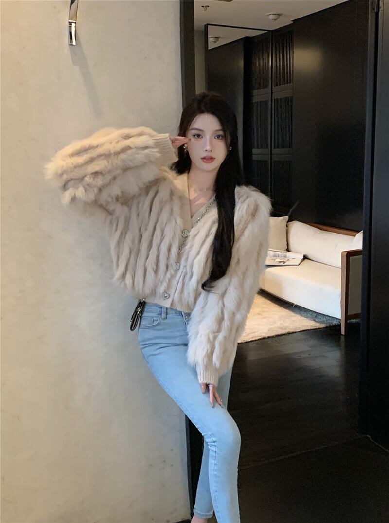 セーター Vネックカーディガンジャケット オータムウィンターニットトップス 秋物 冬物 ブラックストロベリース50863647868