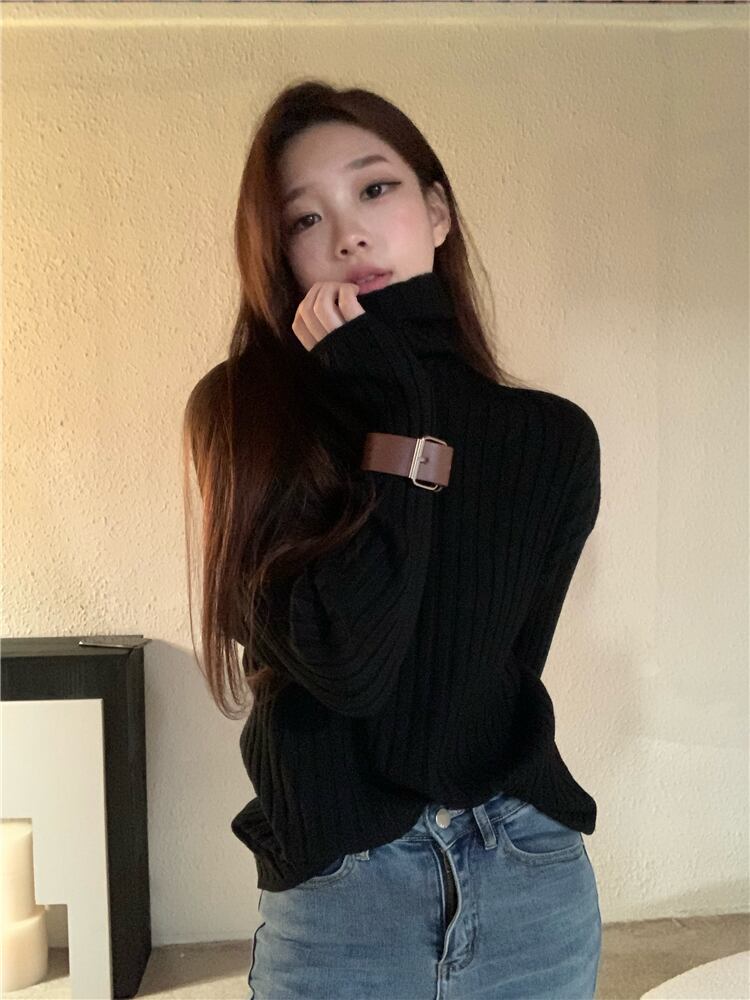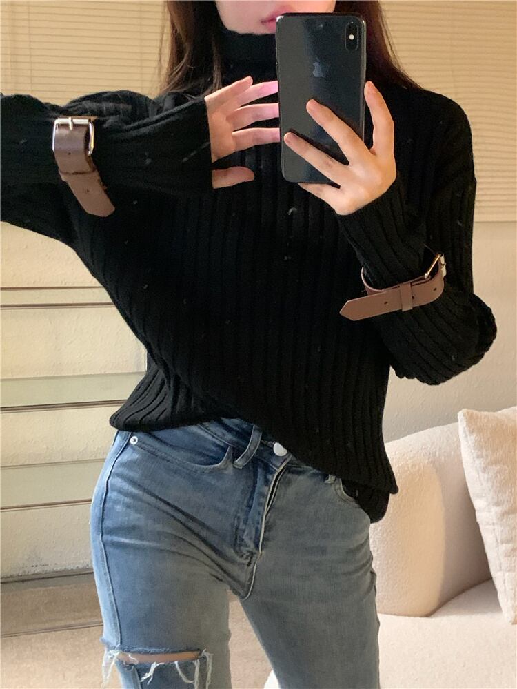 ニットセーター シャツ オータムウィンタースタイルトップス ロング 秋物 冬物 ブラックストロベリース96221964529
