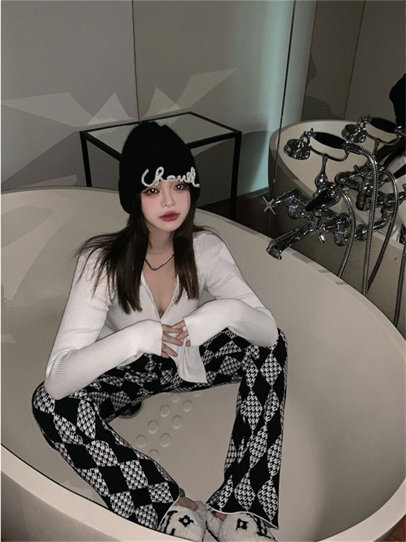 ニットセーター ホワイトカーディガンジャケット スタイル ロング ウィンター 冬物 タイツ ストッキング ソックス ブラックストロベリース44741882432