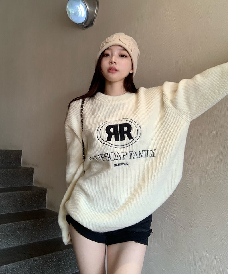 セーター 刺繍ルーズスタンダードスタイルコート ジャケット オータム レトロ 秋物 ブラックストロベリース2169833487