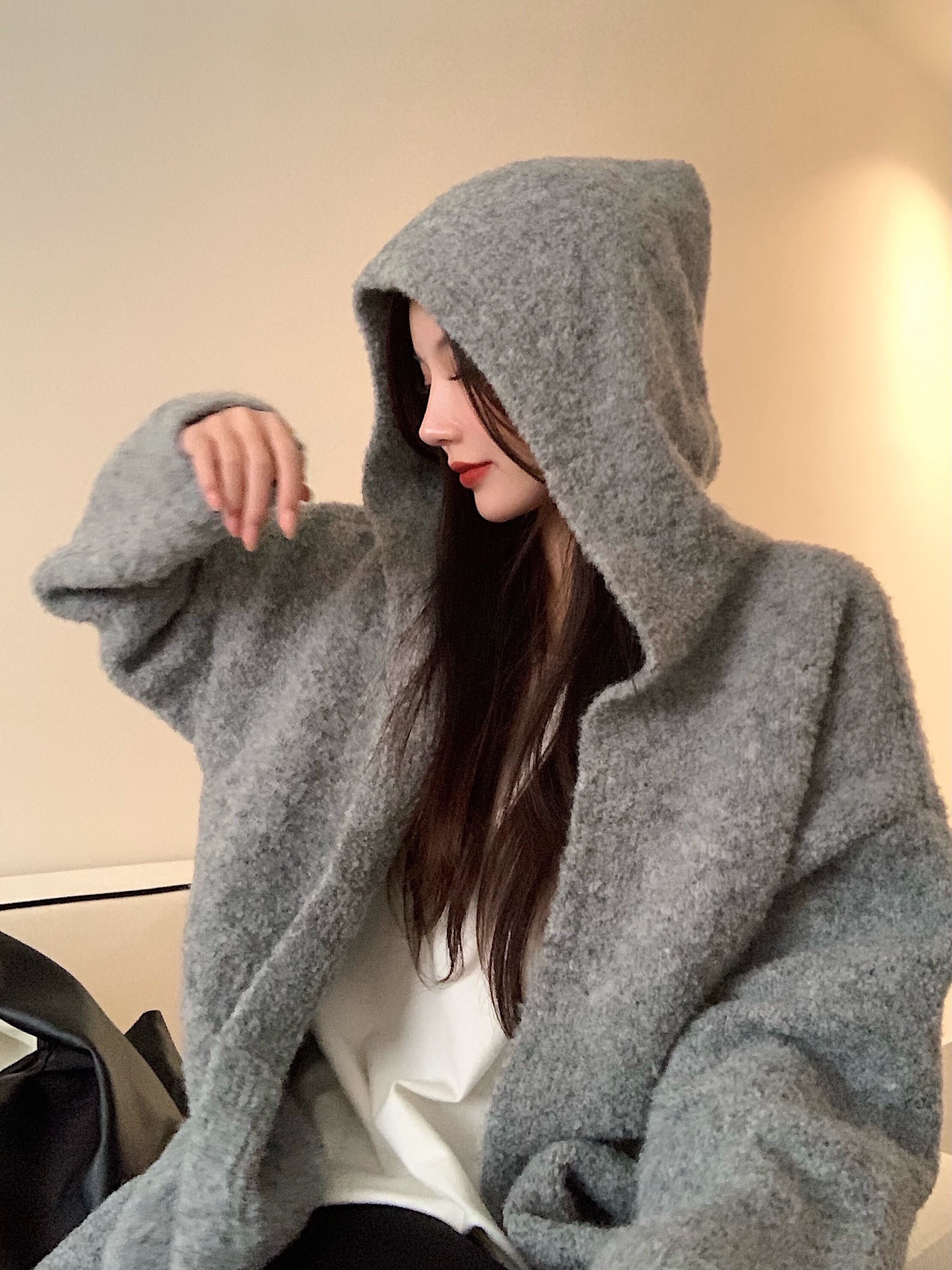 セーター ルーズフードカーディガンジャケット オータムウィンタートップス 秋物 冬物 ブラックストロベリース64052637302
