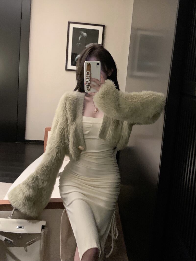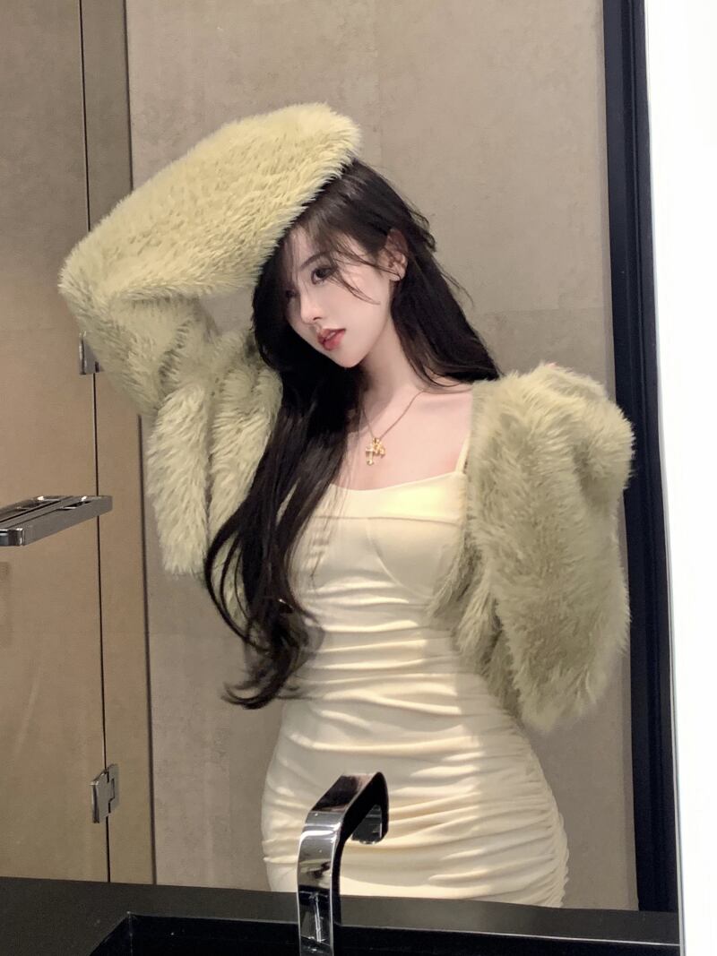 ベルベットジャケット ショートスリムフィットスタンダードVネックトップス オータムウィンター レトロ 秋物 冬物 ブラックストロベリース3751224886
