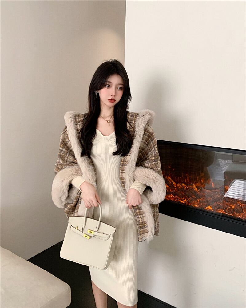 スタンダード格子柄ジャケット オータムウィンターコート レトロ 秋物 冬物 ブラックストロベリース77990658815