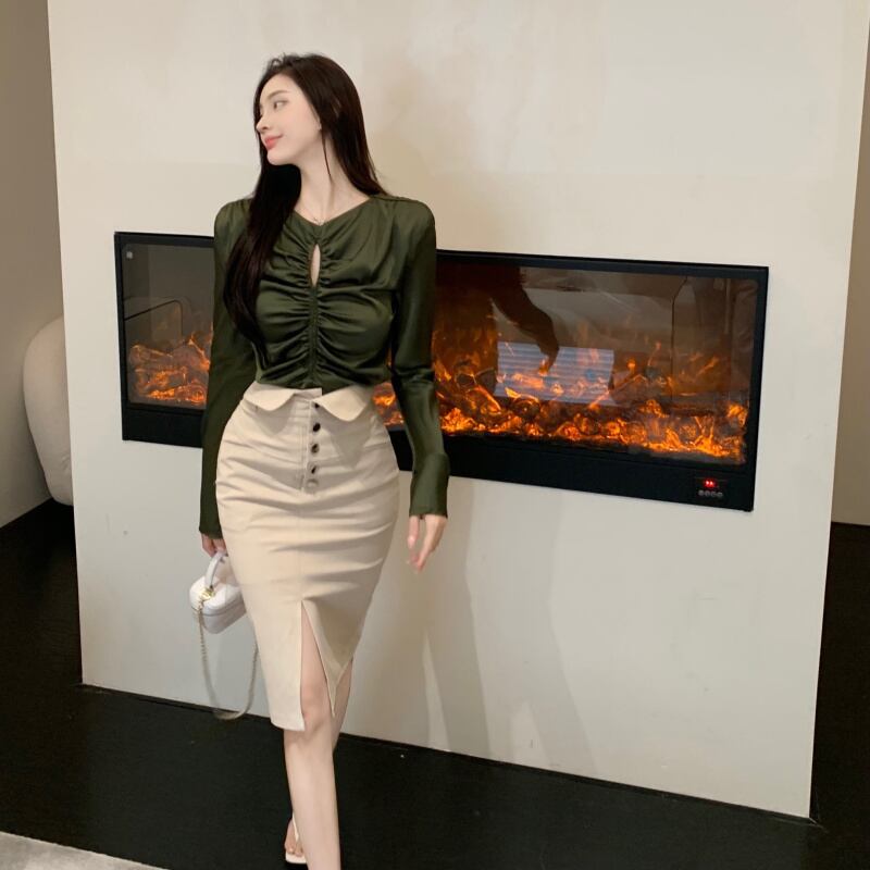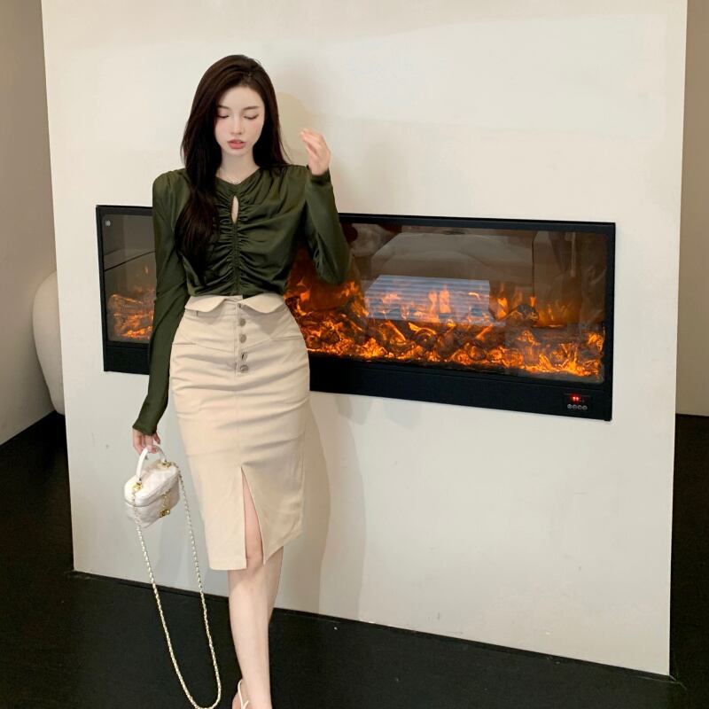 ショートスリムシャツ トップス ロング ウィンター 冬物 ブラックストロベリース88273669765