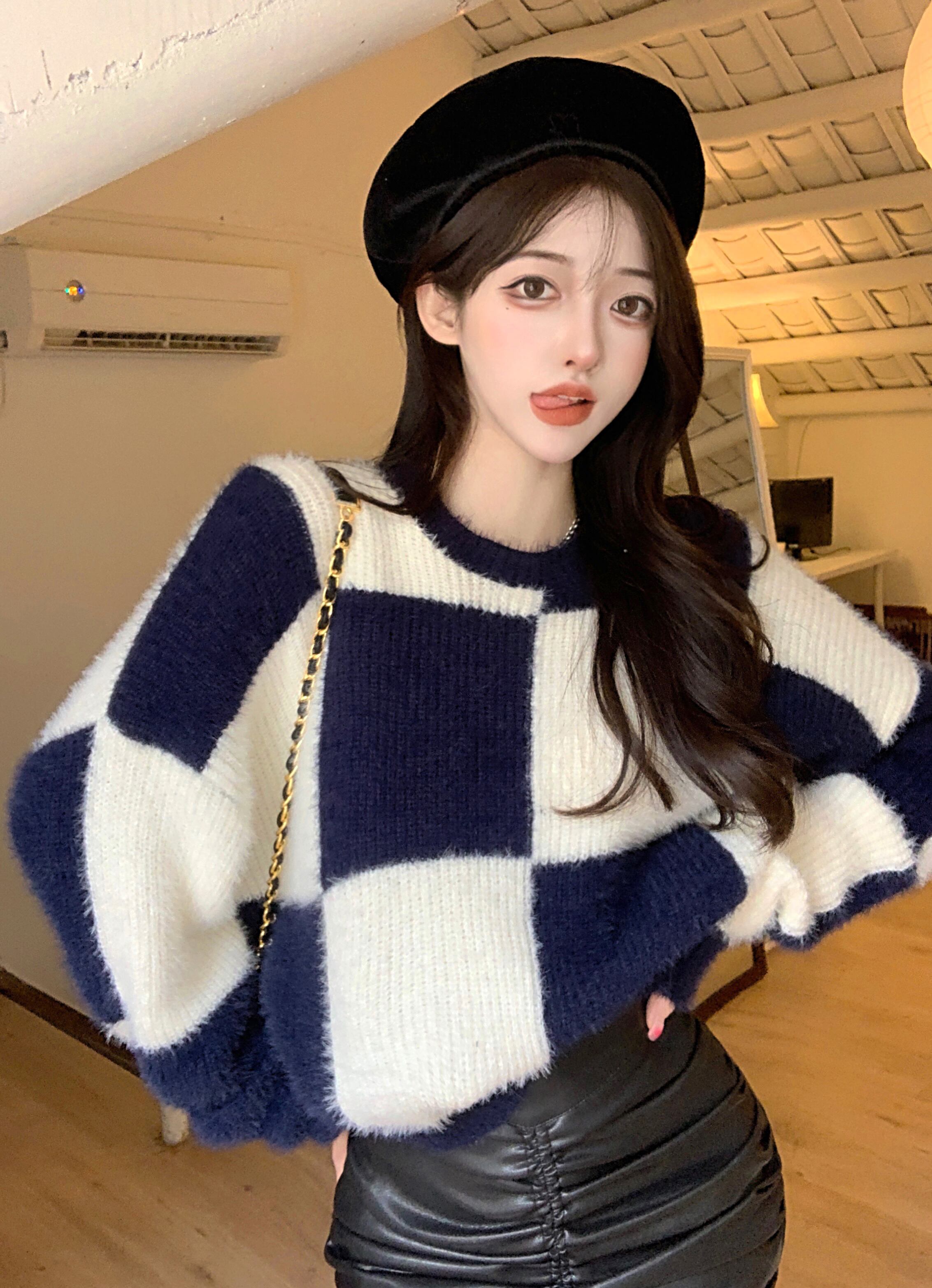 セーター レディースルーズスタンダードトップス オータムウィンター レトロ 秋物 冬物 ブラックストロベリース22144931828