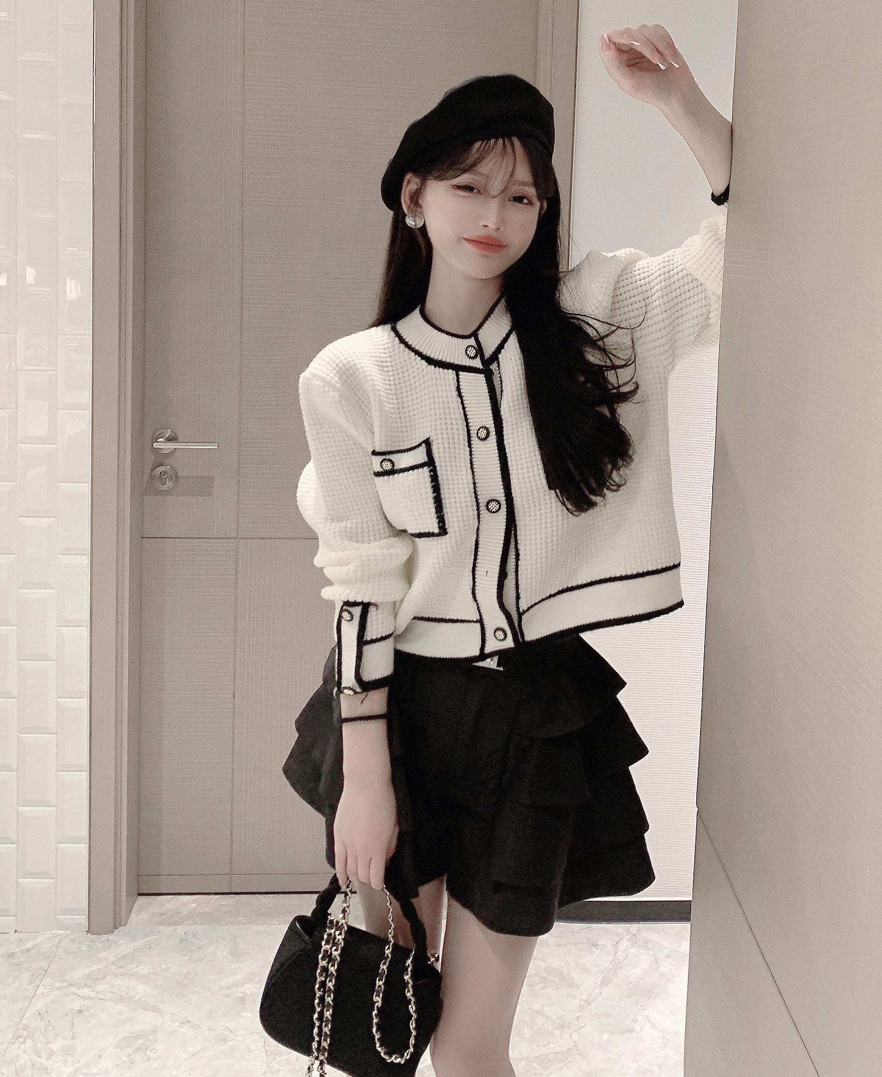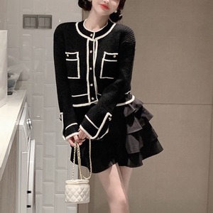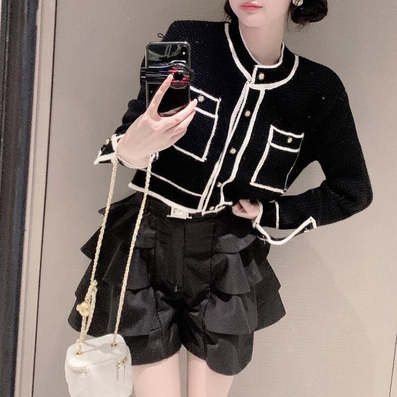 ニット ショートブラックルーズカーディガンジャケット スタンダードセーター トップス レトロ ウィンター 冬物 ブラックストロベリース37418496109
