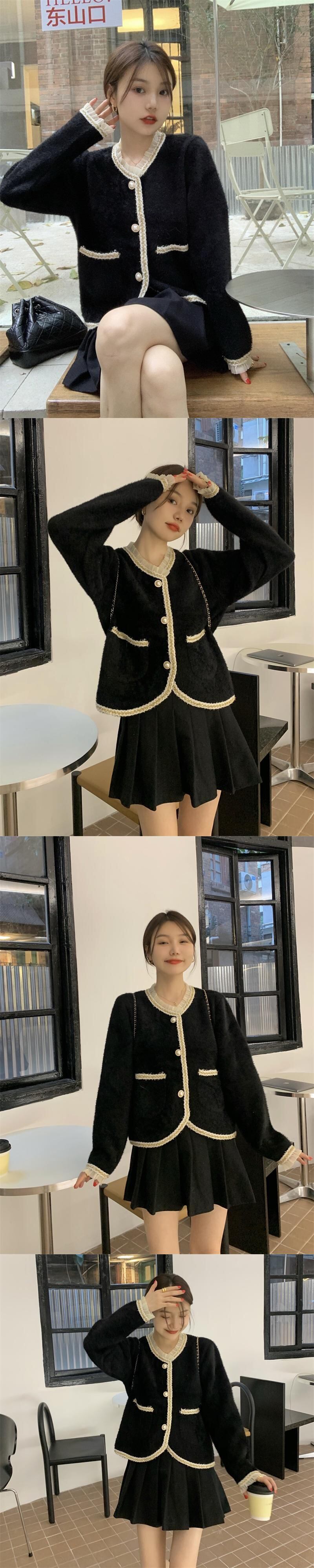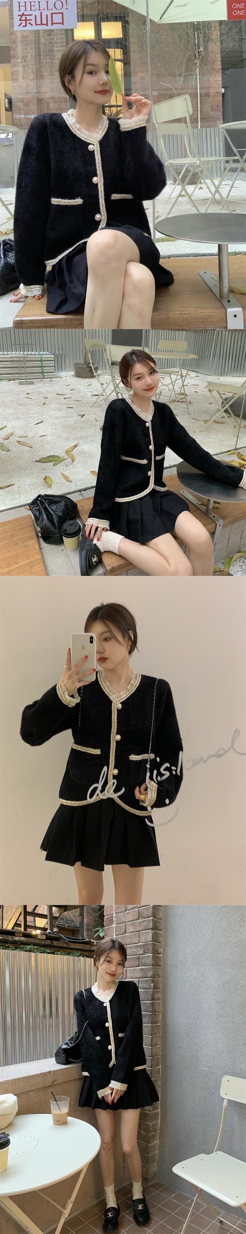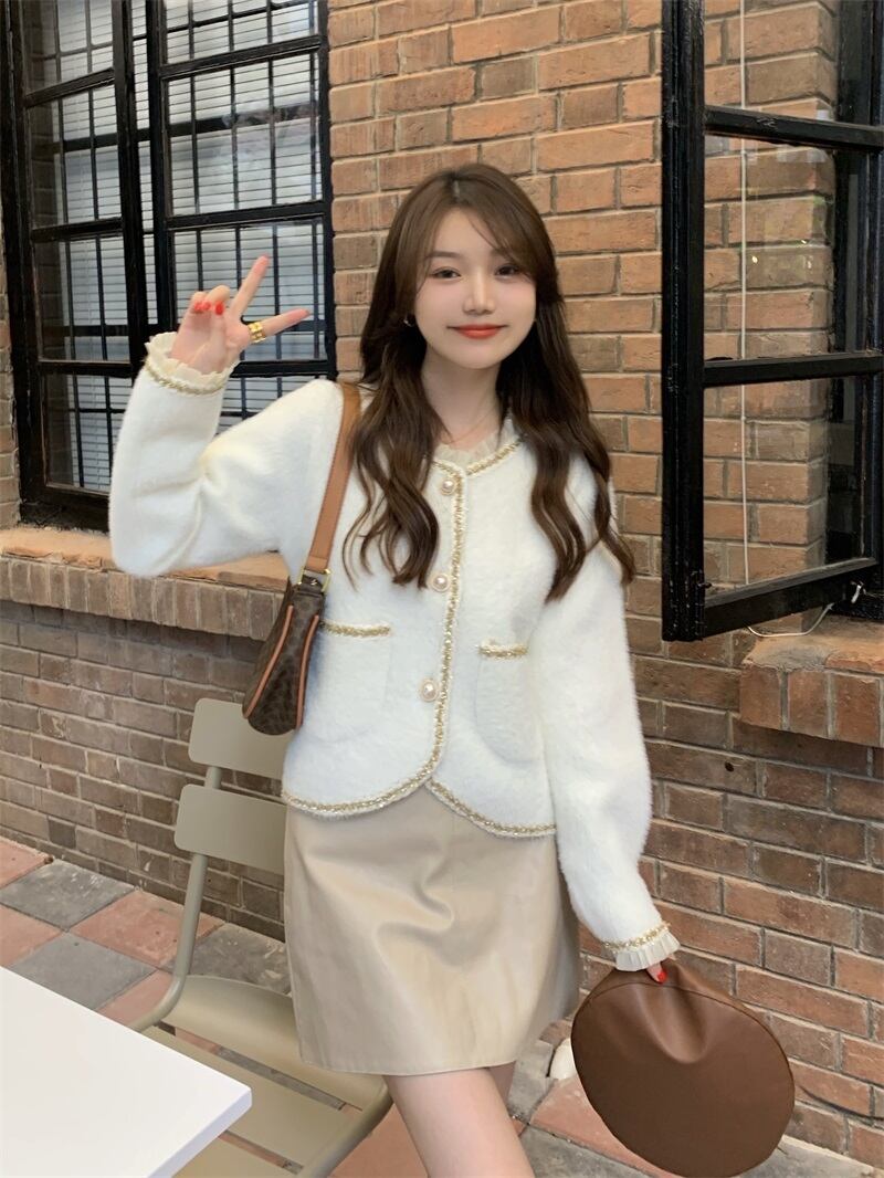 セーター ホワイトカーディガンジャケット スリムニットトップス ウィンター 冬物 ブラックストロベリース73925669711