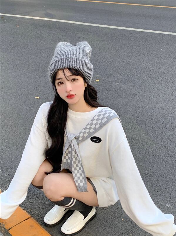 ルーズジャケット オータムウィンターラウンドネックプルオーバー トップス コットン 秋物 冬物 Oネック ブラックストロベリース15224518800